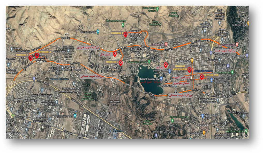 پروژه تریتیوم امیرکبیر به آدرس تهران، منطقه 22 ، شهرک گلستان، بلوار امیرکبیر، جنب مجتمع تجاری و اداری مالمون در زمینی به مساحت 00 / 9167 مترمربع در حال احداث می باشد. پروژه مذکور در 28 طبقه سازه که 4 طبقه تجاری و 6 طبقه جهت تامین پارکینگ و انباری و سرایداری می باشد. پروزه شامل 8 دستگاه آسانسور که 5 دستگاه آسانسور نفربر و 3 دستگاه آسانسورآتش نشانی میباشد.